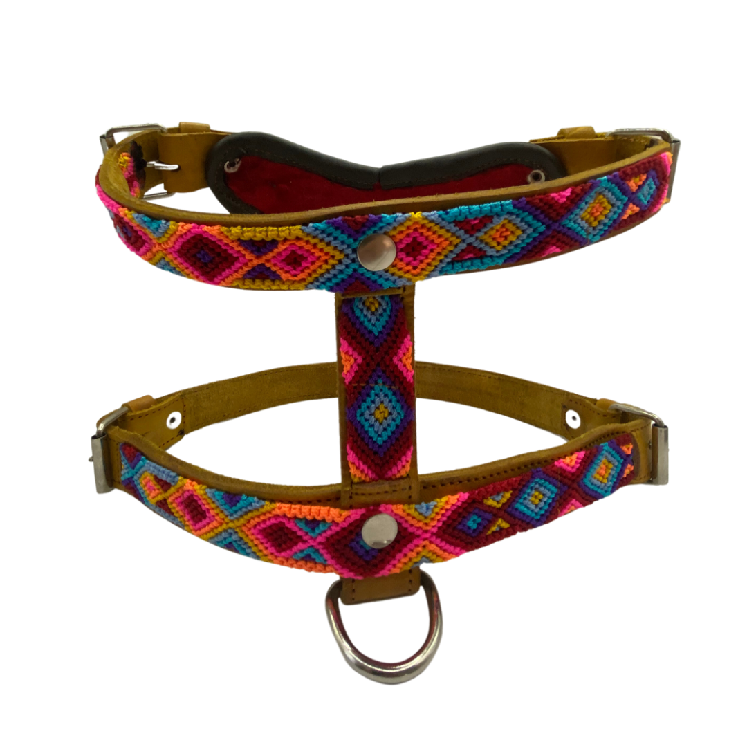 Apapacha a tu mascota con este arnés tan único, aunque puedan ser parecido uno del otro, ninguno es igual. Cada pieza muestra la esencia y el esfuerzo del artesano.