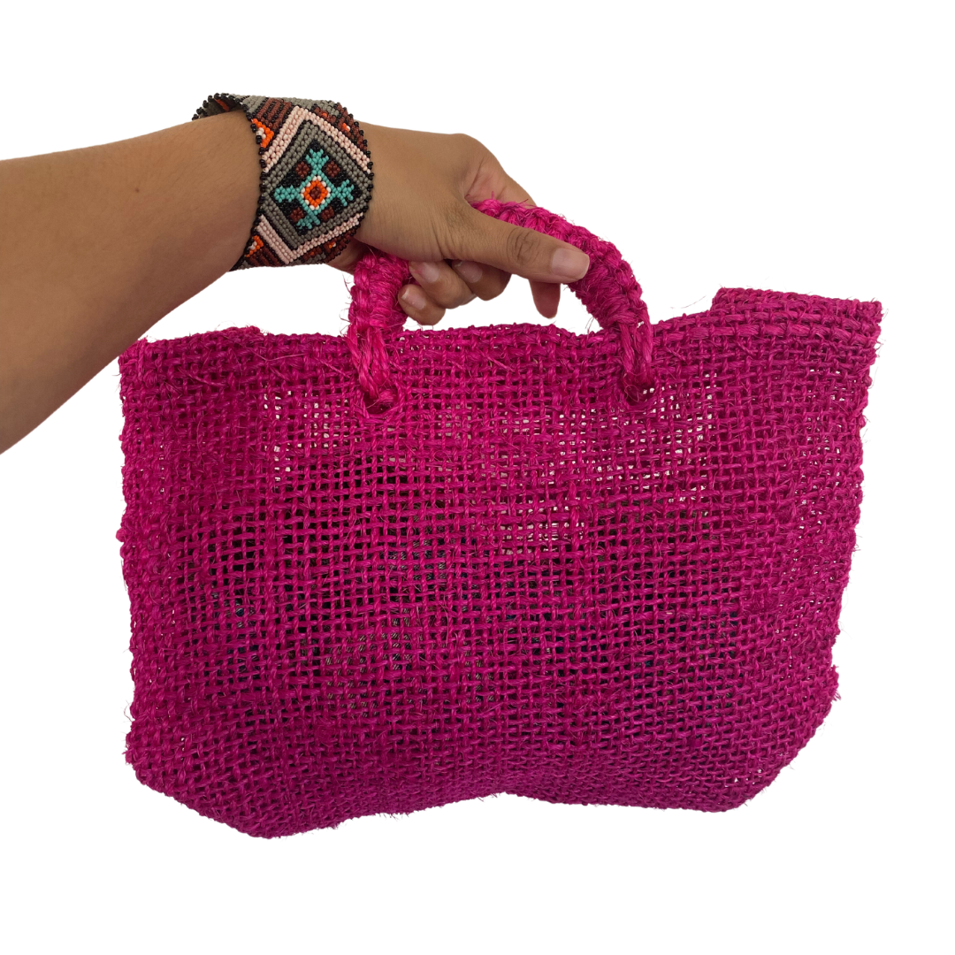 La medida del bolso es de 25 x 30 cm. El asa está fabricada con el mismo material (ixtle).