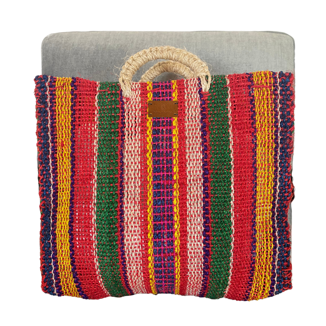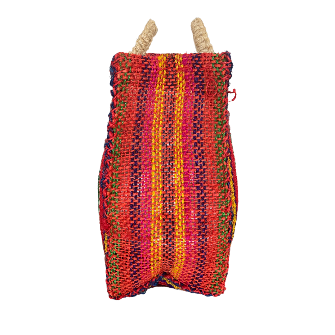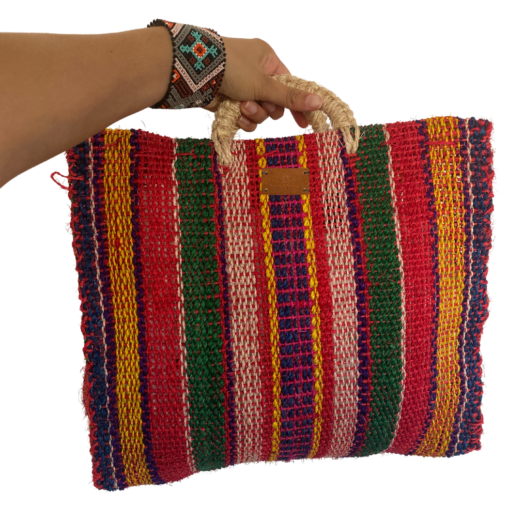 La medida del bolso es de 35 x 34 cm. El asa está fabricada con el mismo material (ixtle).