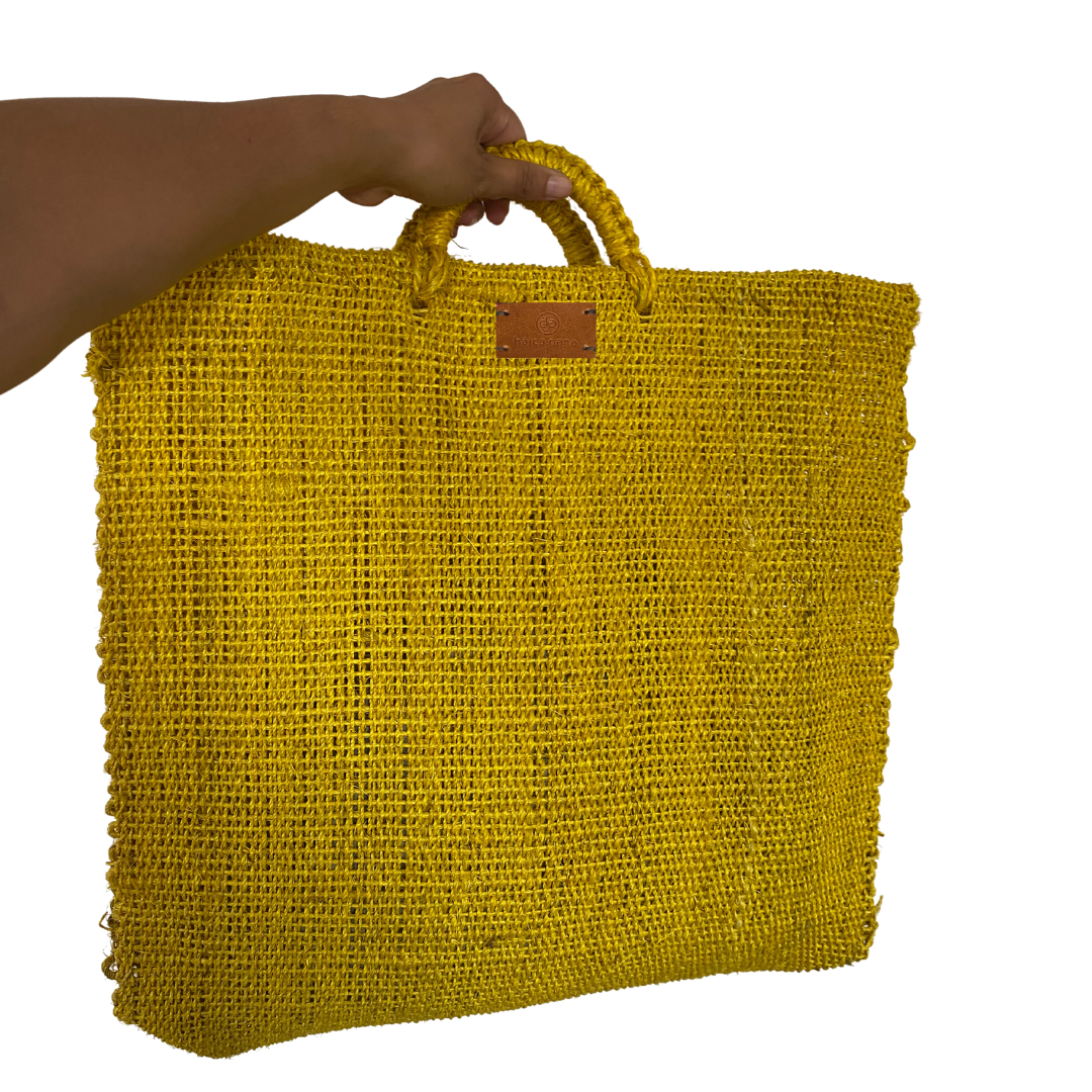 La medida del bolso es de 45 x 44 cm. El asa está fabricada con el mismo material (ixtle).