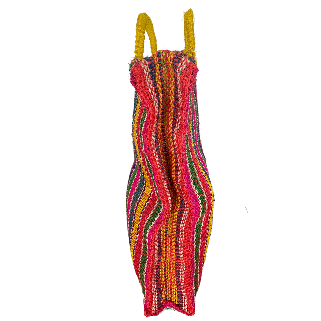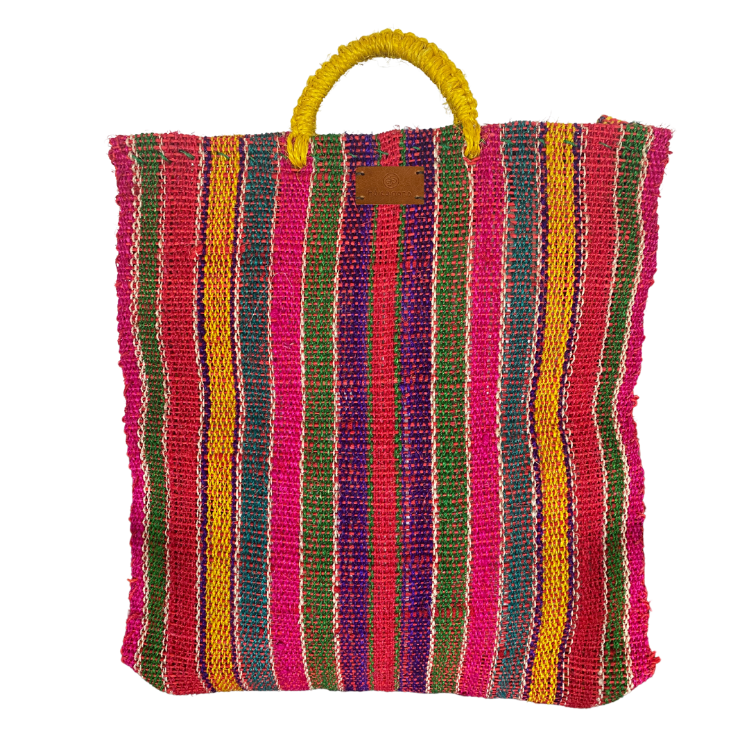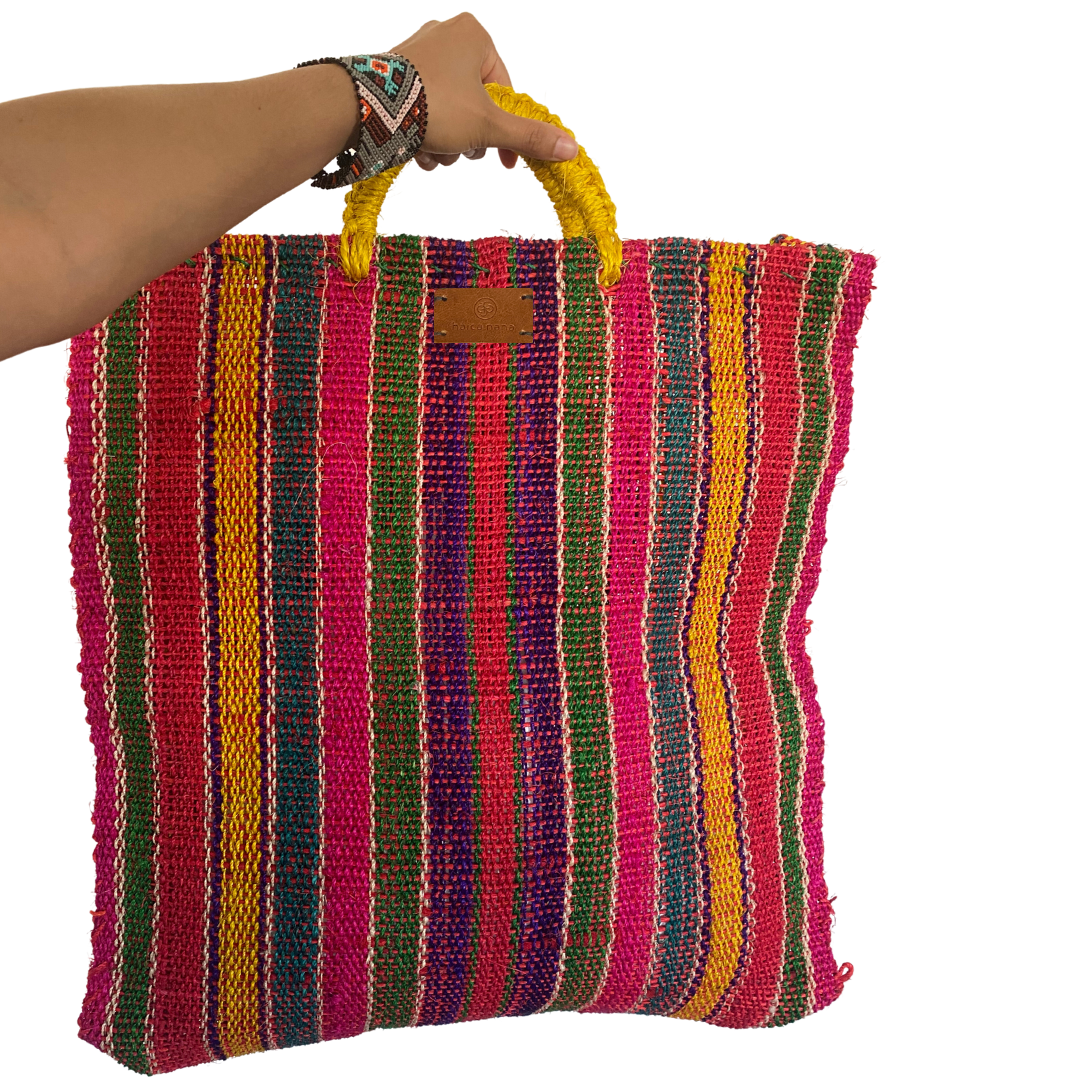 La medida del bolso es de 50 x 50 cm. El asa está fabricada con el mismo material (ixtle).