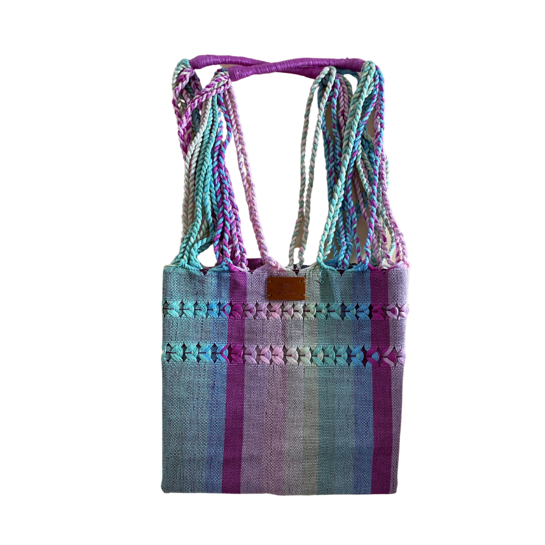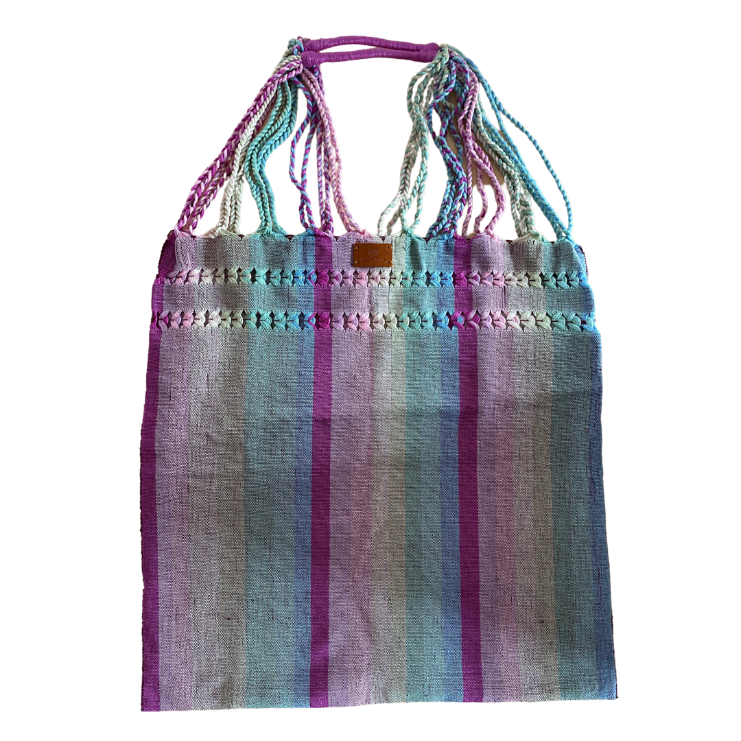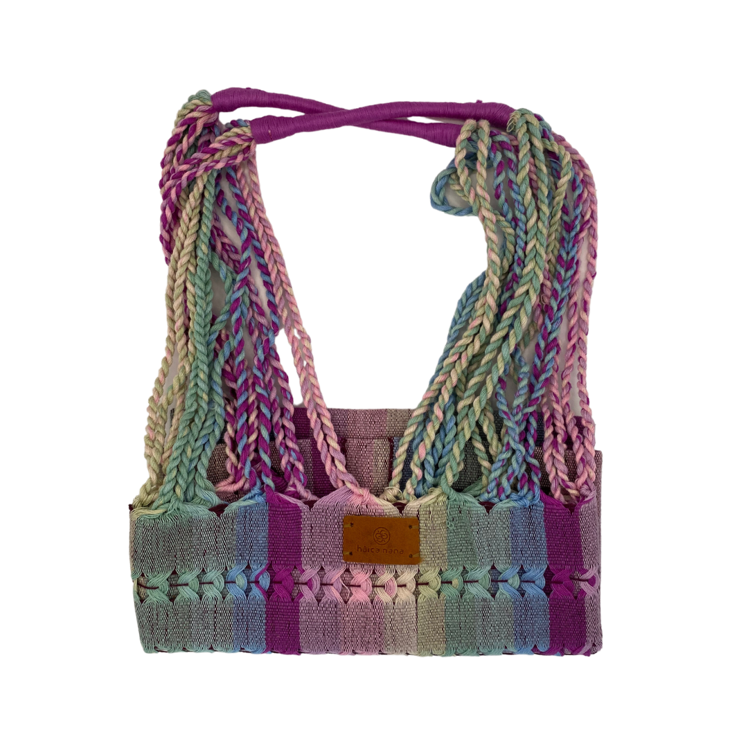 Bolso tipo tote, elaborada a mano por la comunidad Tzotzil en San Andrés Larráinzar, Chiapas, México. Realizado a partir de la técnica de telar de cintura,con hilos de algodón, en el cual vierten elementos mayas propios de su cultura ancestral, regularmente están elaborados con líneas y algunos de los bolsos pueden tener brocados.