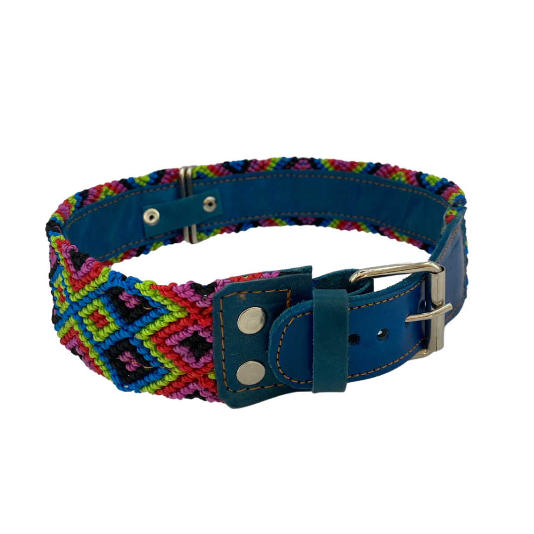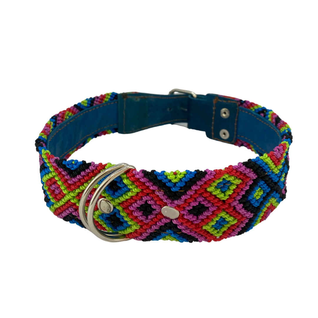 Collar para mascota talla L, trenzado a mano por artesanas de Los Altos de Chiapas, México.