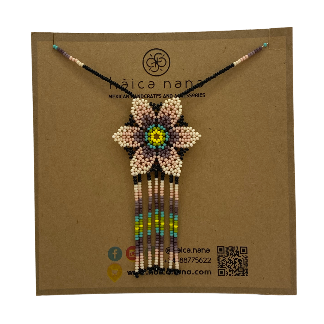 Collar artesanal, hecho a mano por artesanas de la comunidad Wixárika en México.