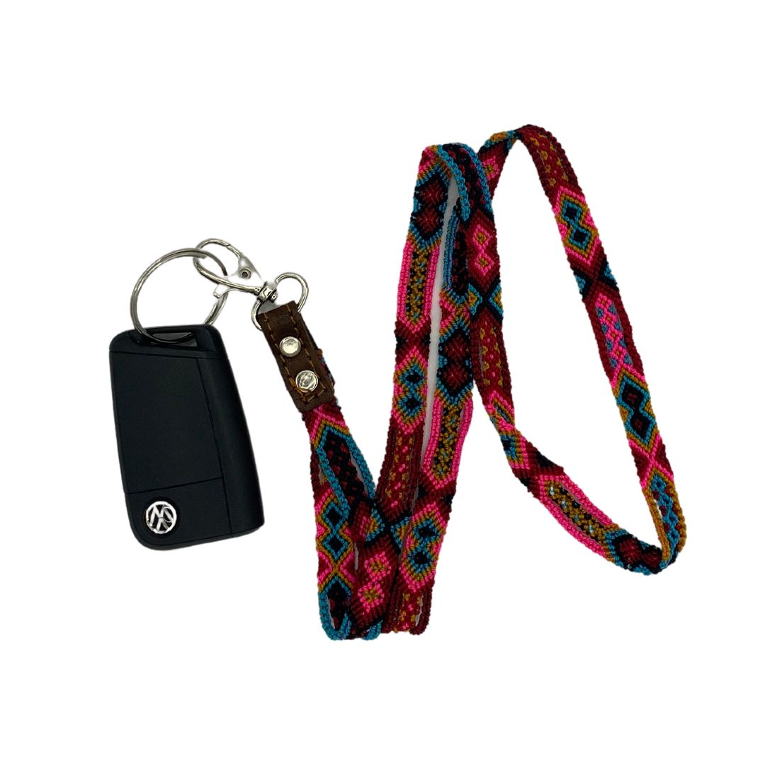 Lanyard o también conocido como porta gafete, tejido a mano por artesanos de la comunidad Tzotzil en México.