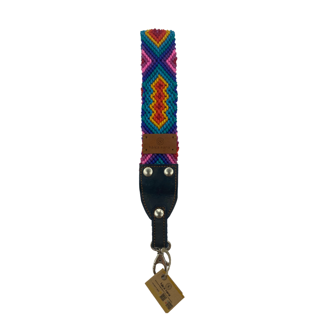 Este accesorio es ideal para llevarlo de llavero que facilita el encontrar las llaves, también puede ser utilizado como correa de mano para bolso pequeño. realizado por artesanas de la comunidad Tzotzil en Chiapas, México.