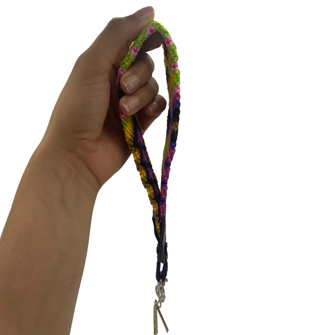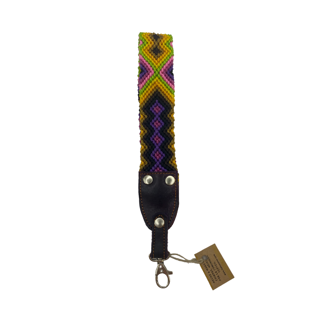 Este accesorio es ideal para llevarlo de llavero que facilita el encontrar las llaves, también puede ser utilizado como correa de mano para bolso pequeño. realizado por artesanas de la comunidad Tzotzil en Chiapas, México.